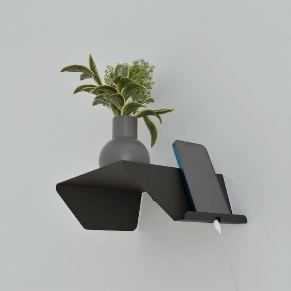 Upgrade your space with the sleek Dual-Function Geometric Wall Shelf, a minimalist solution for both decoration and functionality. Made from durable, powder-coated metal, this innovative shelf features a sculptural, geometric form that doubles as a stylish platform and a dedicated phone docking station.