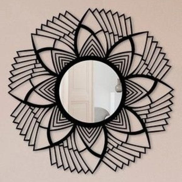 Elevate your interior décor with the Lotus Bloom Decorative Wall Mirror — a harmonious blend of modern geometry and natural inspiration. This round mirror is encased in a bold, black metal frame that mimics the shape of a blooming lotus flower, featuring intricately layered petal patterns for a striking 3D effect.