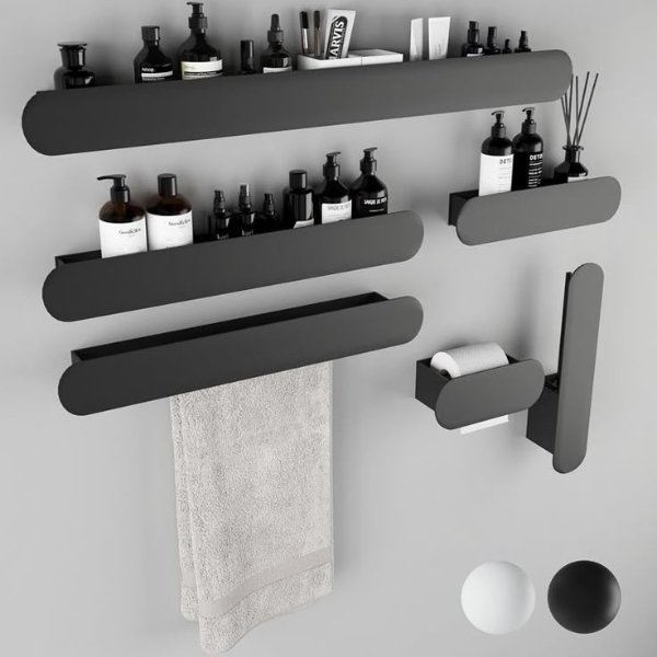 Upgrade your bathroom space with the ModWall™ Modern Bathroom Organizer Set — a minimalist, space-saving storage solution that combines function with high-end design. Crafted with a matte black finish, each module offers specific utility: wide trays for toiletries, narrow holders for small items, an integrated towel rack, a stylish toilet paper holder, and a wall-mounted brush or cleaning tool slot. Designed for durability and modern aesthetics, ModWall™ transforms your bathroom into an organized, clutter-free sanctuary.