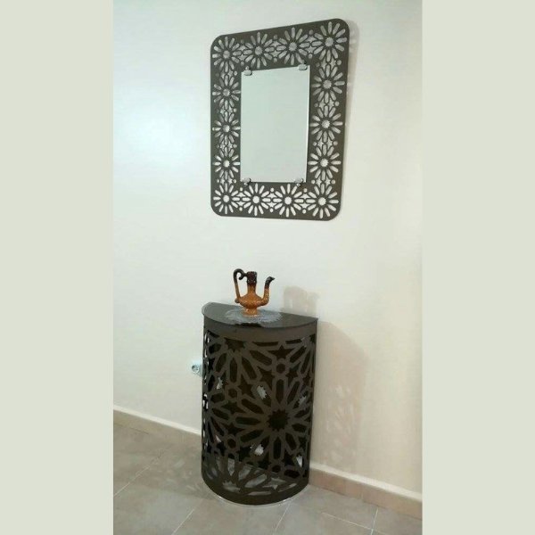 Moroccan-Inspired Laser-Cut Console Table & Mirror Set