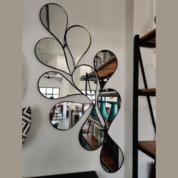 A modern wall mirror set featuring a unique petal-shaped design with black metal framing—perfect for adding artistic flair and light to any space.