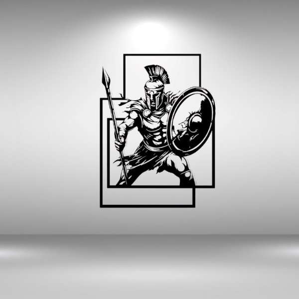 Bring strength, history, and warrior spirit into your living space with this Spartan Warrior Wall Art Decal. Featuring a dynamic black-and-white illustration of a Spartan soldier poised for battle, complete with spear, shield, and traditional helmet, this decal adds a bold focal point to any room. The layered rectangular frame design enhances its visual depth, making it more than just wall art—it’s a conversation piece.